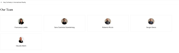 By clicking “View all” on the Agents tab, the user will land on the team page showcasing all your agents with their names and headshots.